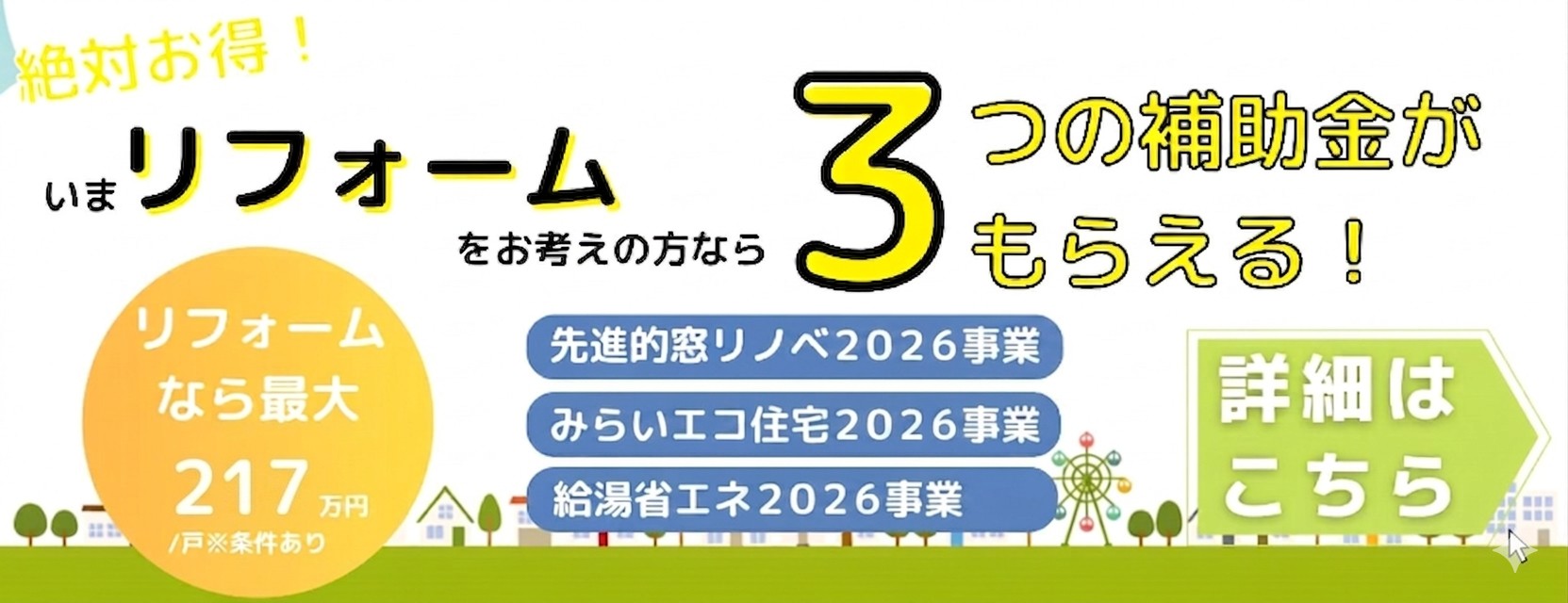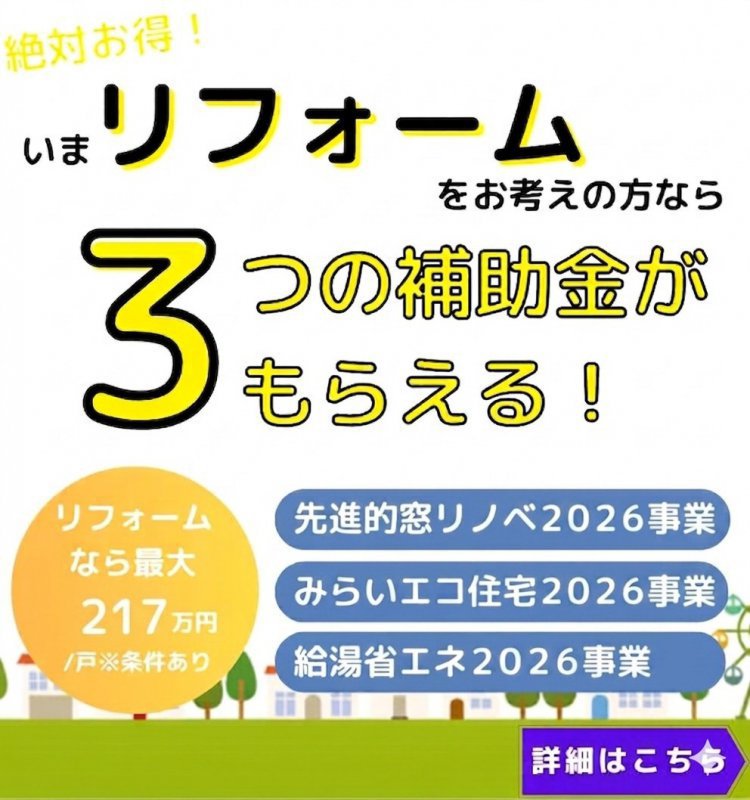 いつも弊社のホームページをご覧いただきましてありがとうございます。 2026年1月9日(金)~1月17日(土)まで、 『リフォーム&増改築 初売り感謝祭』を開催致します♪ ご来場特典やお見積り特典などたくさんお得な企画をご用意しております。 皆さまのご来場をお待ちしております♪