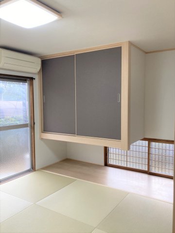 畳を琉球畳に交換、クロス貼り替え、引き戸交換、収納新設をさせていただきました。