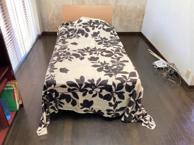 増築をご希望されていましたがスペースが無いので、「キッチンを寝室に。リビング兼寝室にキッチンを移動する」と言うご提案をさせていただきました。