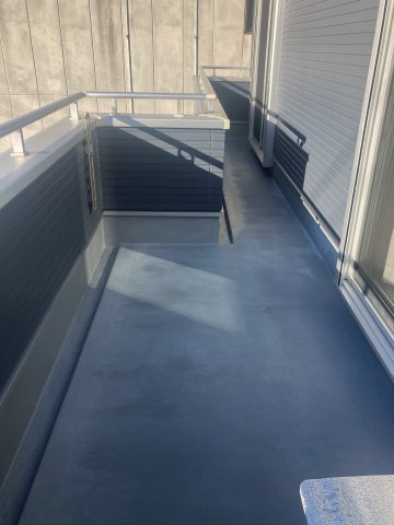 トップコート下の防水層は、まだ防水性が保てれていて元気な状態でしたので、表面のトップコートの塗装のみのリフォームをご提案させていただき、当社でリフォームをさせていただく事になりました。