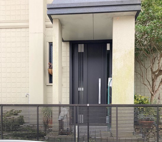 現地調査にお伺いした所、玄関ドアが開きにくい状態でしたので、新しいドアにリフォームさせていただく事になりました。