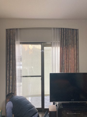 その他の窓は既存のカーテンや窓枠が少し複雑な形状なので、細やかな作業が必要でした。