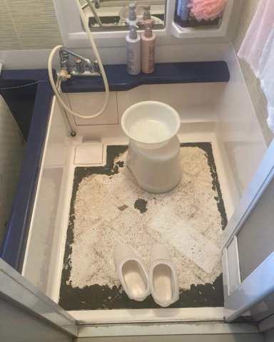 ・以前、住まれていた方が貼ったお風呂の洗い場のシートがめくれているのでシートの下に水が染みていないか心配。落ち着いてお風呂に入れない