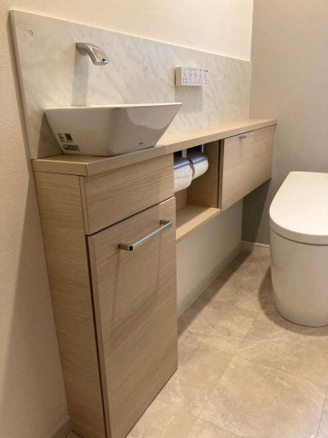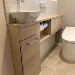 このたびはTOTOネオレストのリフォームをお任せいただき、誠にありがとうございます。ネオレストは佇まいがとても落ち着いてシンプル。清潔にご使用していただける機能が充実しております。新しい手洗い水栓は、なんと自動水栓です。ハンドルに触れる必要がないので清潔にご使用いただくことができます。内装もシックな落ち着いた上品な雰囲気に。洗練された新しいネオレストで快適なトイレ空間をお楽しみくだされば幸いです。これからも快適な住まいづくりをお手伝いできるよう、スタッフ一同努めてまいります。