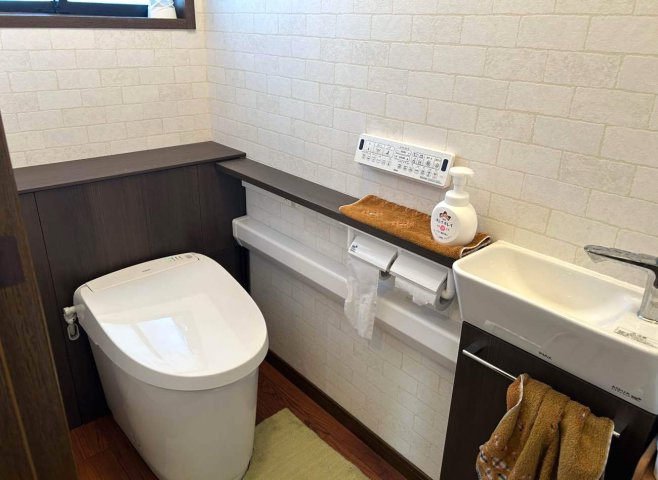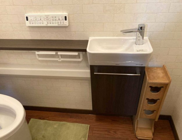 このたびはJフィットL型トイレのリフォームをお任せいただき誠にありがとうございました。JフィットL型トイレは見た目スッキリとしたキャビネット付トイレです。こちらはスタイリッシュな手洗いも付いております。タンクはキャビネットに収まっているので手の届きにくかった床や壁のお掃除はカウウンターまわりをサッと拭くだけで簡単にお掃除出来るようになります。お掃除道具やトイレットペーパーなどもキャビネット内に収納することで整えられた清潔感溢れるトイレ空間が実現します。また停電や将来のメンテナンスも対応されており安心してお使いいただけます。Jフィットで毎日の生活に欠かせないおトイレの快適・清潔・安心を実感していただけると幸いです。これからも快適な住まいづくりをお手伝いできるよう、スタッフ一同努めてまいります。