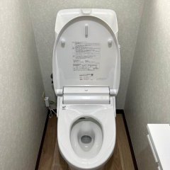 このたびはLIXILアメージュシャワートイレのリフォームをお任せいただき誠にありがとうございます。特徴的な丸みを帯びた形のタンクのデザインがとても可愛らしいカスカディーナは1974年から1999年頃まで旧INAXより発売されていました。可愛らしいさゆえに長年便座のみを交換して愛用されているご家庭も多いのではないでしょうか。実はこのカスカディーナは排水芯120㎜と特殊でお取替えできる機種も限られてしまいます。LIXIL製品のリモデルタイプへのお取替えなら安心して交換することができます。また200芯への振替工事を行うことで選べるトイレの区切りはなくなります。お取替工事をさせていただいたアメージュシャワートイレはとても機能的なトイレです。内装も周りの木材との調和がとれたシックな色合いでとても落ち着いています。LIXILの新しいおトイレで快適な日常をお送りいただけたら幸いです。これからも快適な住まいづくりをお手伝いできるよう、スタッフ一同努めてまいります。