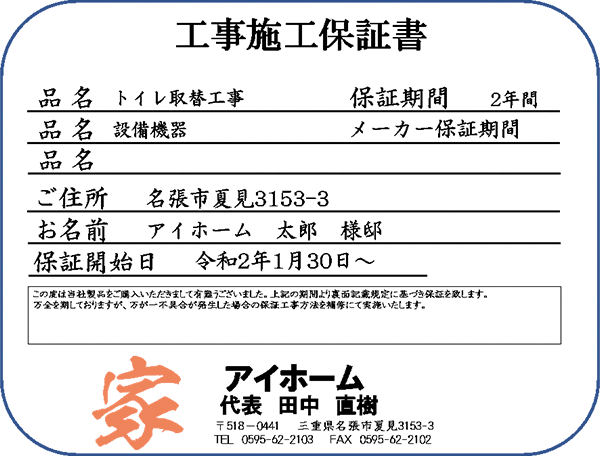 もちろん、これらは保証書に基づいて無償で対応させていただきます。