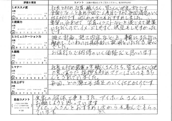 アイホームさんをおすすめした方からも喜んでもらっています。