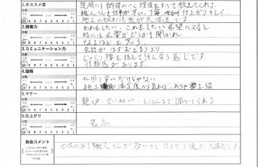 親切・丁寧。お仕事ぶりも、完成した仕上がりも満足です